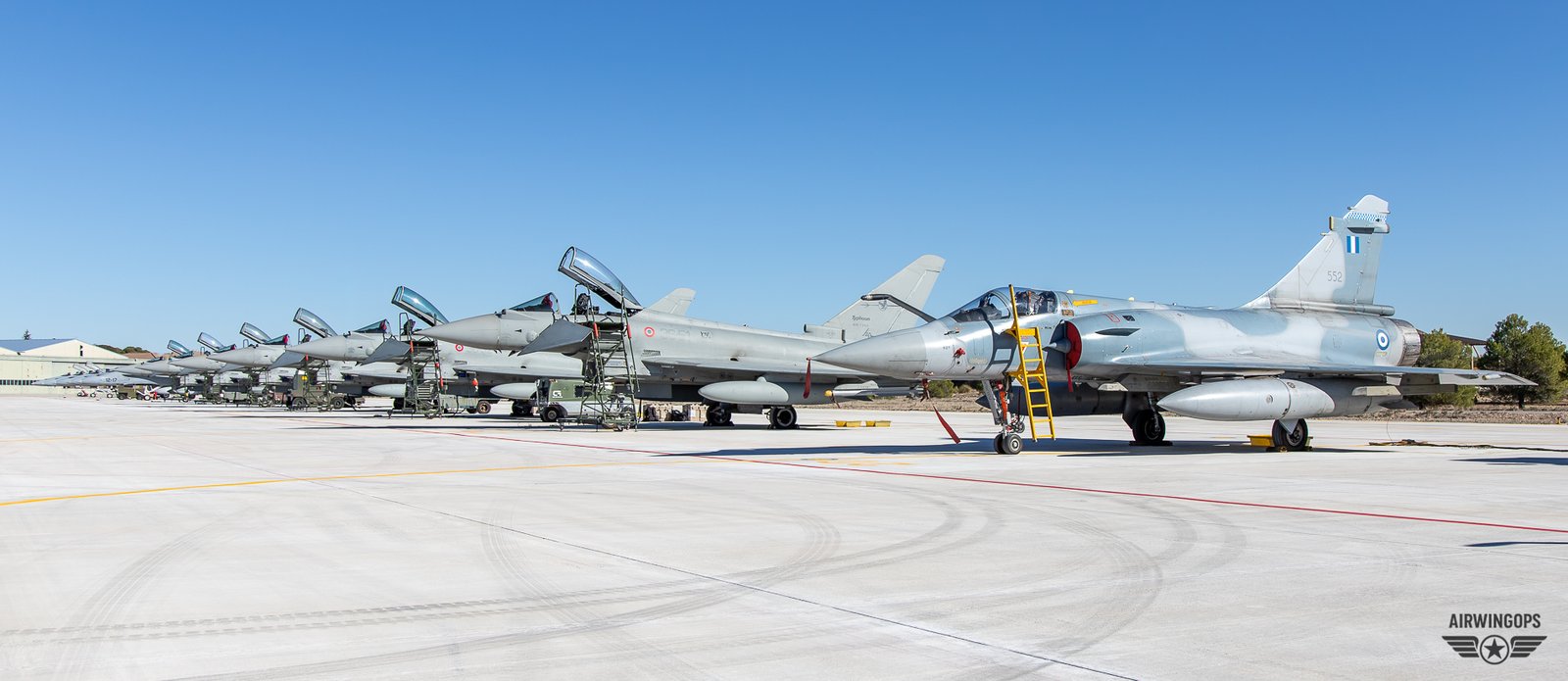 Cette dernière session pour l’année 2023 était pour le moins attendue après l’annulation de la précédente dû à un nombre insuffisant de participants. Cette fois ci ce ne fut pas moins de 7 nations et 38 machines qui prirent part à la bataille. Mis à part l’Espagne, la France, l’Italie, le Royaume Uni et la Grèce qui sont membres du MoU, notons la présence d’invités avec la Pologne et la République Tchèque venus respectivement avec 4 F-16 et deux L-159 Alca. Pour le reste cette édition fût particulièrement marquée par la présence d’Eurofighter, au nombre de 18 répartis sur trois nations, ainsi que de 2 Mirage 2000-5 Grecs. Côté français, la Marine Nationale prenait cette fois part au dispositif avec 4 pilotes et 4 Rafale M issus de différentes flottilles.